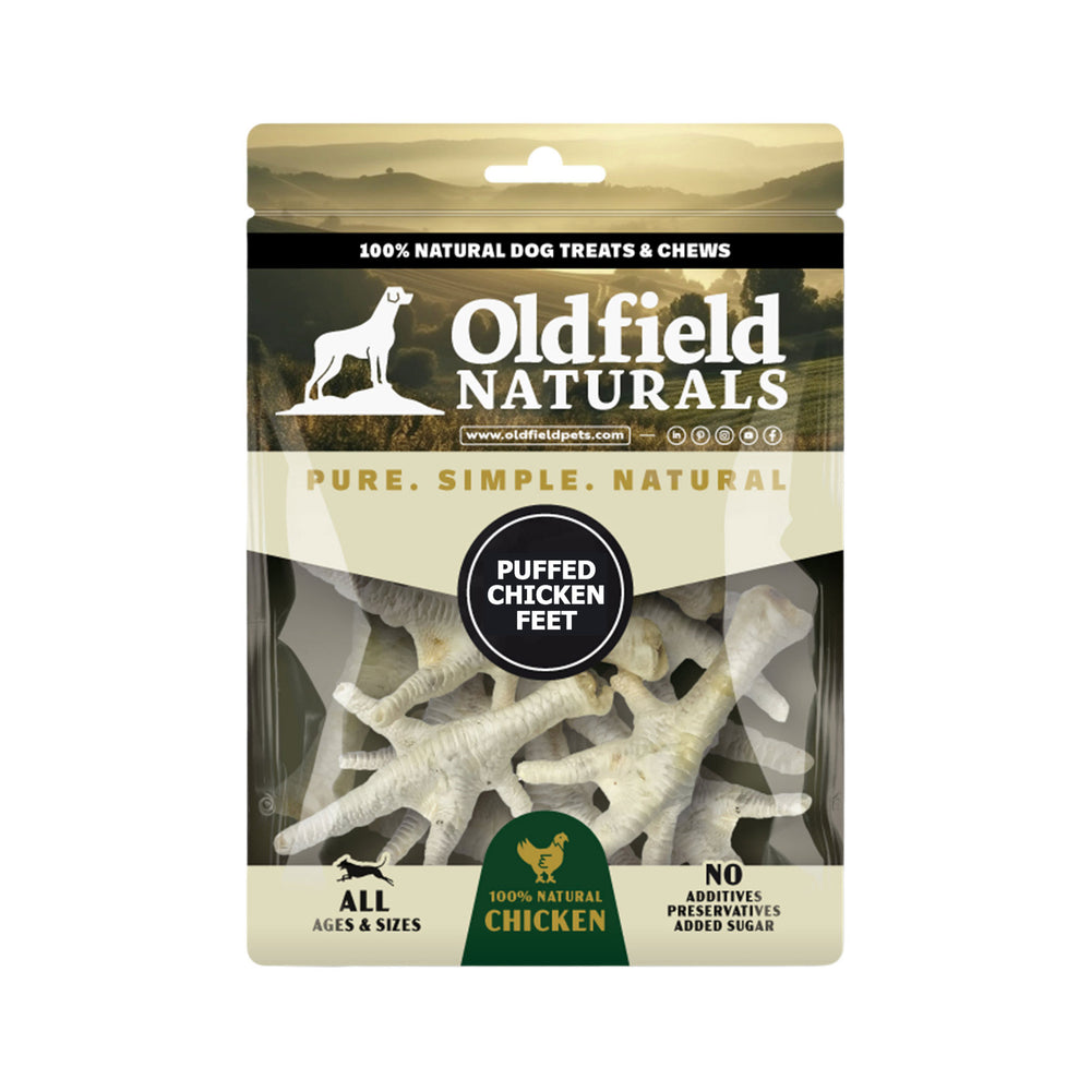 Light, crispy, and irresistibly tasty – Oldfield Naturals Puffed Chicken Feet are a gentle, easy-to-chew treat perfect for small, senior, or weight-sensitive dogs. The airy texture makes them easy to digest, while the natural chicken flavor keeps tails wagging.